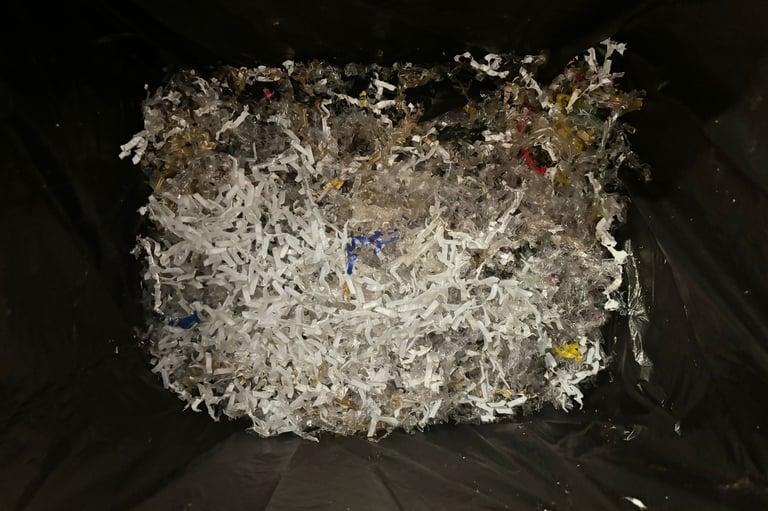 Shredded pieces of plastic (flakes) can't be separated by recylers that use Near Infra Red (NIR) spectroscopy. NIR uses light to identify the plastic types and that only works if it penetrates through a plastic object such as a full bottle. NIR technology is very expensive and is only used by larger facilities in developed countries.